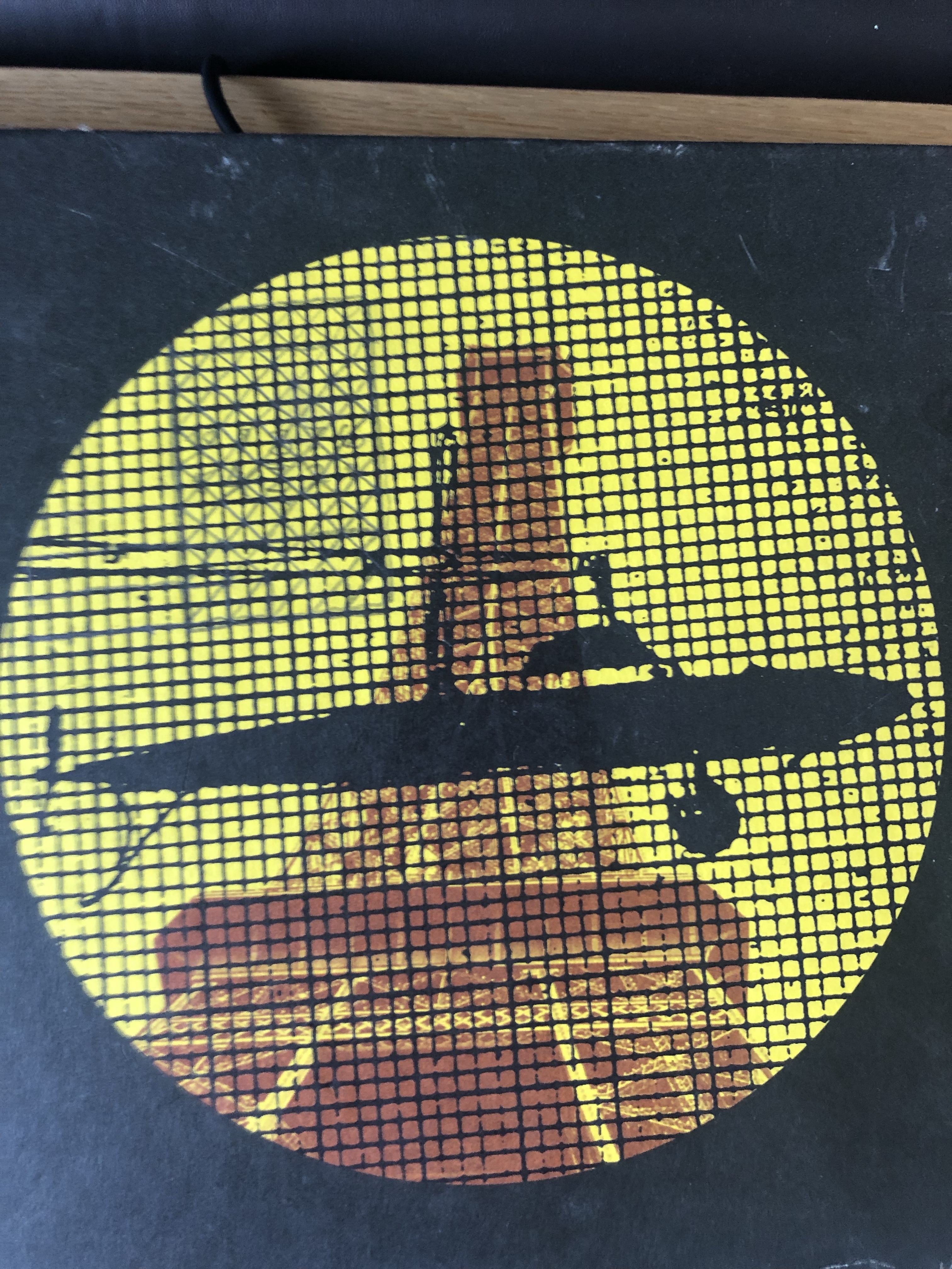 On découpe avec la scie à chantourner, d’abord les objets et puis le fond et à la fin de la journée j’ai pu coller les deux sur une cale tendue avec de la colle d’os (et oui ça pue)